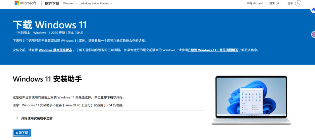 2、用微软提供的重装件 下载 Windows 11