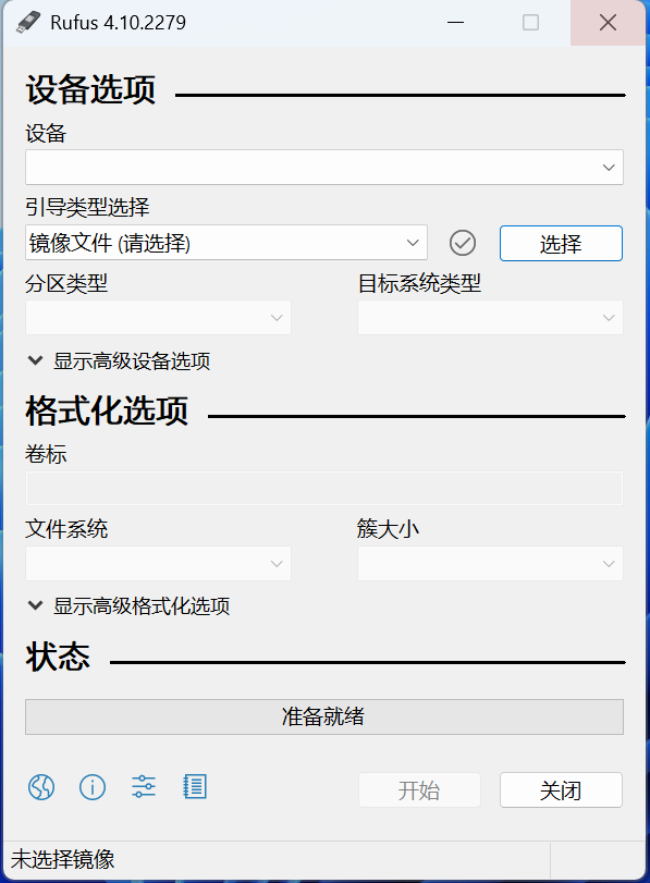 然后打开rufus这里设备选择插入的U盘,选择这里选择下载好的镜像,无脑下一步,其他的可以不用管,默认就行。等做好以后按上面操作进入blossU盘启动根据引导来就行。