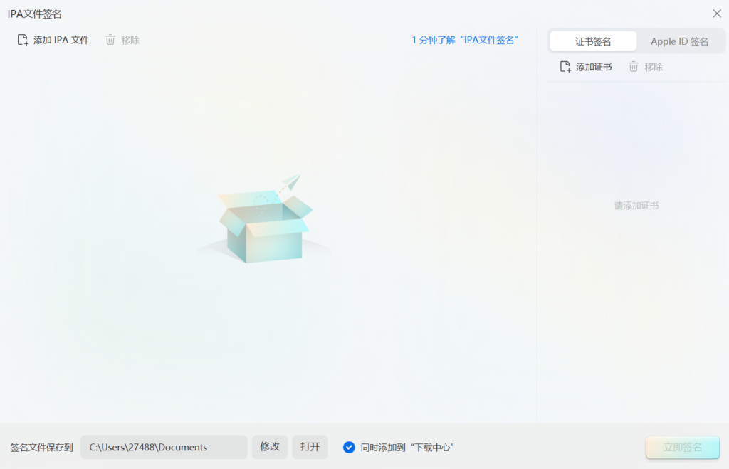 打开后导入相应的文件一个是证书(没有证书就apple ID签名),一个是ipa文件